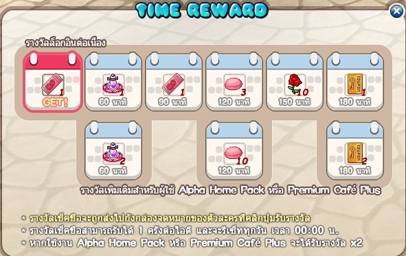 รางวัล Time Reward สามารถรับได้ 1 ครั้ง ต่อ ไอดี / วัน และจะรีเซ็ททุกวัน เวลา 00.00.01 น.