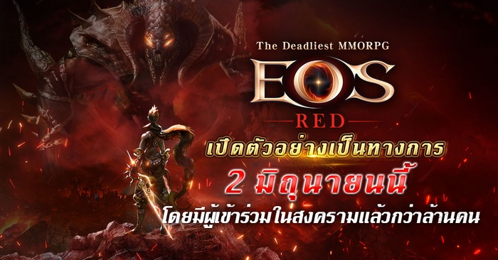 ผลงานเกม MMORPG ระดับมาสเตอร์พีซของเกาหลี “EOS RED” ได้เปิดตัวในกว่า 10 ประเทศ รวมถึง ไทย อินโดนีเซีย สิงคโปร์ ฟิลิปปินส์ และมาเลเซีย มีผู้เล่นมากกว่า 1.5 ล้านคน ถือเป็นเกมที่น่าติดตามที่สุด กลุ่มแฟนคลับและแพลตฟอร์มโซเชียล ล้วนมีหัวข้อสนทนาคือ “EOS RED” จะเปิดตัวเมื่อใด! ประกาศอย่างเป็นทางการในวันนี้ว่าวันเปิดตัวคือวันที่ 2 มิถุนายน เวลา 10.00 น. (GMT +7)