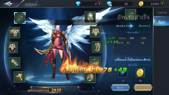 ทางด้านระบบการเพิ่มความสามารถของตัวละครนั้นก็จะมาแบบเกมแนวเดียวกันปกติ ที่คนเล่นจะสามารถสวมใส่อุปกรณ์แล้วก็อัพเกรด และรวมไปถึงการติดตั้งอุปกรณ์เสริม เครื่องรางต่างๆ โดยคนเล่นจะสามารถหาวัตถุดิบจากการไปเล่นในดันเจี้ยนต่างๆ หรือเอาง่ายๆ ก็คือ ใช้เพชรจ่ายไปเลย ง่ายดี