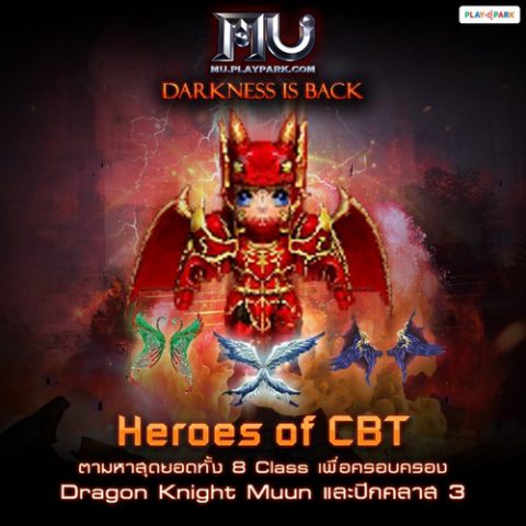 เตรียมร่วมผจญภัยไปในดินแดน MU พร้อมกันClose Beta Test 10 – 15 มีนาคมนี้ รับประกันว่า ดาร์คจริง เดือดจริง!! ติดตามข่าวสารความเคลื่อนไหวของเกม MU Online เพิ่มเติมได้ทางหน้าเว็บไซต์ https://MU.PlayPark.com หรือที่ Facebook Page PlayPark MU TH