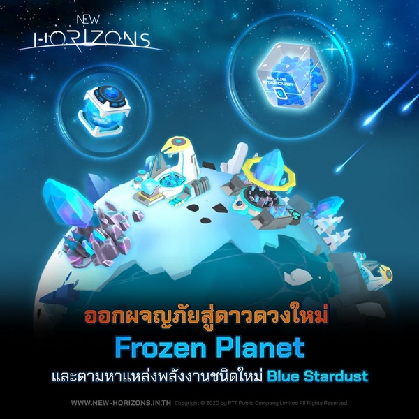 ได้เวลาขยายแหล่งสำรวจกันแล้ว ! “Frozen Planet” ดาวดวงใหม่ที่ผู้เล่นจะได้รับมอบหมายจากทีม GEN ให้ออกสำรวจค้นหาพลังงานเพื่อส่งกลับมาช่วยโลก โดยลักษณะทางกายภาพของดวงดาวมีอากาศหนาวเย็นน้ำแข็งจับตัวตลอดเวลา ส่วนข้อมูลอื่นๆ ยังไม่ทราบแน่ชัด ดังนั้นจึงเป็นหน้าที่ของผู้เล่นทุกท่านที่จะออกสำรวจดาวดวงนี้ ดาวน้ำแข็งจะเปิดให้หน่วย New Horizons ออกผจญภัยค้นหาพลังงานใหม่ได้ตั้งแต่วันนี้เป็นต้นไป