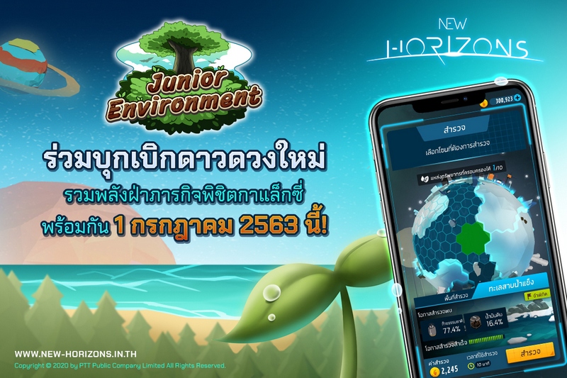 New Horizons เกมพลังงานรูปแบบใหม่จาก ปตท. ที่เปิดให้บริการโดย Ini3 ซึ่งขณะนี้ได้การตอบรับจากผู้เล่นเป็นอย่างดี ทะยานขึ้นสู่ 100,000 ดาวน์โหลด รวมถึงติดท็อปชาร์ตอันดับต่าง ๆ บนสโตร์ทั้งระบบ iOS และ Android หลังเปิดให้บริการอย่างเต็มรูปแบบเพียงสองสัปดาห์ รวมถึงกระแสให้การสนับสนุนจากผู้ปกครองในฐานะที่เป็นเกม Edutainment ให้ทั้งความสนุกและความรู้ควบคู่กัน และในวันนี้ได้อัพแพทช์ใหม่ล่าสุด “Junior Environment” ให้ผู้เล่นได้สวมบทบาทเป็นนักอนุรักษ์พลังงานตัวน้อย เพิ่มพื้นที่สีเขียวให้กับดวงดาว กอบกู้วิกฤตพลังงานธรรมชาติ คืนความสมดุลแก่แกแล็กซี่