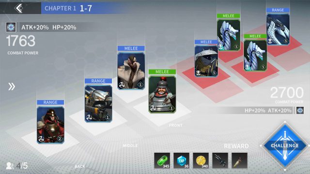 ถึงแม้ว่าเกมจะมีระบบออโต้มาให้เล่น แต่ในการเล่นแบบตะลุยด่านนั้นก็ต้องเลือกตัวละครลงทีมกันซักหน่อย คนเล่นจะต้องจัดวางตำแหน่งของตัวละครให้เหมาะสม คนไหนยิงไกลก็วางแนวหลัง คนไหนรู้สึกว่าศัตรูมีพวกเยอะก็ต้องเอาตัวยิงหมู่ใส่ และนไหนที่ต้องเจอบอส ก็ต้องเอาตัวละครถึกๆ ไว้แนวหน้า เป็นต้น