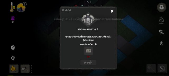 เมื่อซ่อมซากแห่งแสงสว่างได้ จะสามารถสร้างโต๊ะทำงานเพื่อคราฟอุปกรณ์เพิ่มได้อีกมากมาย โดยให้สร้างพลั่วก่อน ซึ่งจะสามารถขุดก้อนหิน สามารถนำมาสร้างโต๊ะทำงานประเภทอื่นๆได้เช่น โต๊ะอาวุธ โต๊ะชุดเกราะ โรงหล่อ ฯลฯ จากนั้นให้นำพลั่วไปเปิดทาง เพื่อไปแผนที่ต่อไป และได้เข้าสู่โลกแห่งการผจญภัยที่แท้จริงกันแล้ว…