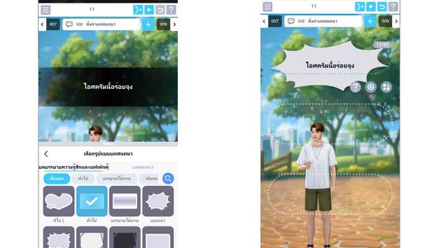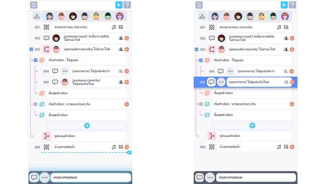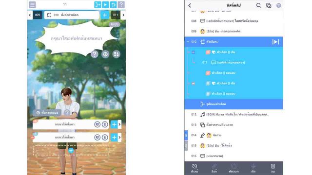 คนเล่นจะสามารถทดสอบเนื้อเรื่องที่สร้างเอาไว้ได้ว่าเป็นยังไง โดยการกดปุ่ม Play ข้างบนเพื่อตรวจสอบความถูกต้องก่อนได้ และเตือนว่า แอพจะไม่มีระบบบันทึกอัตโนมัติ เพื่อความปลอดภัย กรุณา “บันทึก” เป็นระยะๆ ด้วยนะครับ