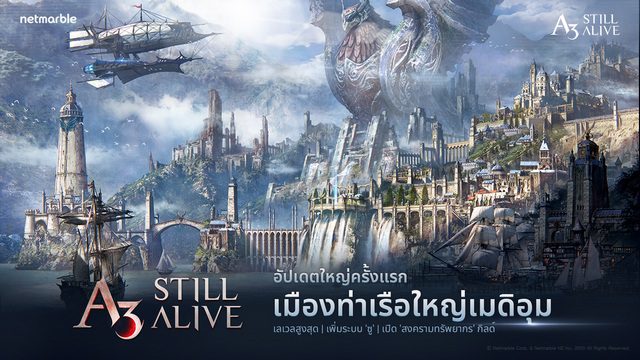 วันนี้ เน็ตมาร์เบิ้ลคอร์ปอเรชั่น ผู้พัฒนาและให้บริการเกมมือถือที่เติบโตเร็วที่สุดในโลกได้ประกาศถึงการอัปเดตครั้งแรกในสุดยอดเกมเอาตัวรอด MMORPG อย่าง A3: STILL ALIVE โลกแห่งความมืดมนที่สวยงาม ซึ่งได้รับการตอบรับอย่างดีจากแฟนๆ ด้วยยอดดาวน์โหลดทั่วโลกทะลุ 1,000,000 ดาวน์โหลดโดยใช้เวลาเพียง 1 สัปดาห์เท่านั้น สามารถดาวน์โหลดได้แล้ววันนี้ทั้งทาง App Store® และ Google Play™ เฉลิมฉลองการอัปเดดตด้วยคอนเทนต์ ‘เมืองท่าเรือใหญ่เมดิอุม’