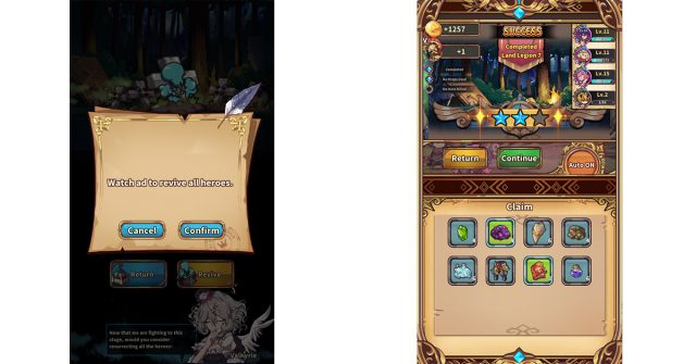 ทว่าหากระหว่างทางคนเล่นตาย ก็จะสามารถกดฟื้นได้ โดยครั้งแรกจะเป็นการกดดูโฆษณา ส่วนครั้งต่อไปนั้นจะใช้เพชรในการฟื้น และตัวเกมนั้นจะมีระบบออโต้ช่วย ดังนั้นต่อให้คนเล่นสู้ไม่ไหวก็ย้อนกลับไปสู้ด่านเดิมซํ้าเพื่อฟาร์มของเอาก็ได้