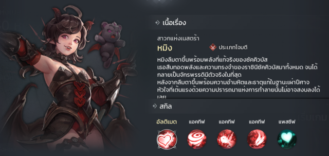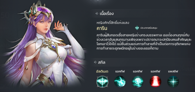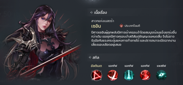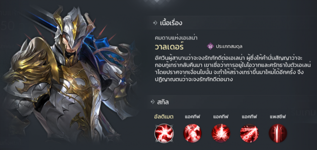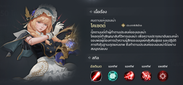 ตัวละครแนวนักฆ่าที่มีสกิลโจมตีที่ค่อนข้างดี โดยความสามารถนั้นจะเน้นเป้าหมายเดี่ยวและมีเอฟเฟคเจาะเกราะ 300% คือแรงทะลุจนเหมาะเอาไปตีกับบอสมาก แถมสกิลยังเน้นโจมตีศัตรูที่เป็นตัวซัพพอร์ตก่อนอีกด้วย