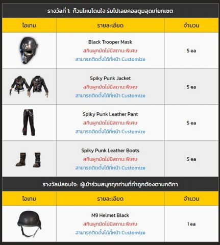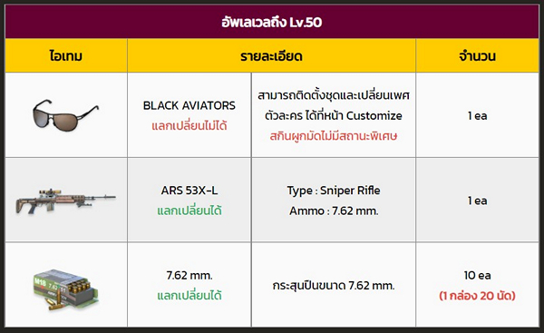 (ตัวอย่างรางวัลไอเทมที่จะได้รับจากกิจกรรม Rank Up)