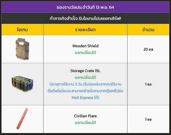 (ตัวอย่างรางวัลไอเทมที่จะได้รับจากกิจกรรม Dangerous Squad)