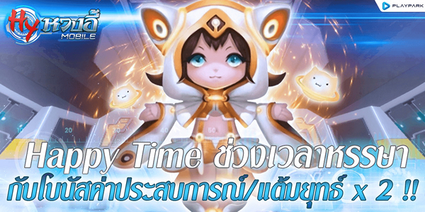 กิจกรรม Happy time: ทุกวัน เวลา 18.00 – 19.00 น. เพิ่มโบนัสค่าประสบการณ์ / แต้มยุทธ์