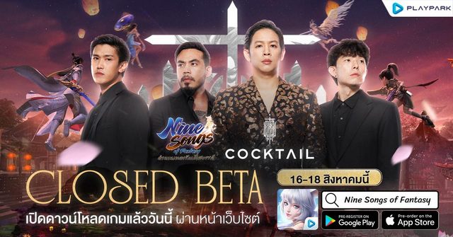 Nine Songs of Fantasy : ตำนานเพลงรักเก้าสวรรค์ เกมมือถือแนวจีน MMORPG สุดอลังการแห่งปีจาก PlayPark คว้าศิลปินวงร็อคชื่อดังอย่าง “COCKTAIL” ร่วมงานทำเพลงประกอบและเป็นพรีเซนเตอร์ให้กับเกม Nine Songs of Fantasy ที่เปิดให้เข้าร่วมทดสอบเกมช่วง Closed Beta ตั้งแต่วันที่ 16 – 18 สิงหาคมนี้ พร้อมกิจกรรมต้อนรับ CBT แจกหนักจัดเต็มตลอด 3 วันเต็ม เล่นฟรีไม่มีค่าใช้จ่าย! ทั้งระบบ iOS และ Android ไปดูรายละเอียดวิธีการเข้าเล่นกันเลย
