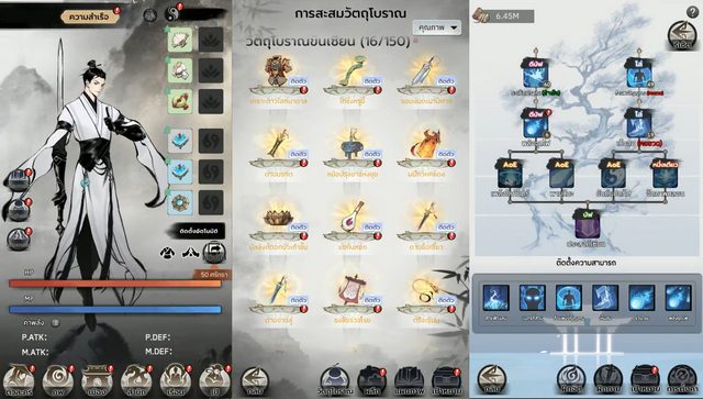 ในเกมมีระบบการพัฒนาตัวละครถึง 6 ประเภท ได้แก่ อุปกรณ์, วัตถุโบราณ, ความสามารถ, ฝึกฝน, กระบวนท่า, และเรือน ซึ่งวิธีการพัฒนาตัวละครเหล่านี้นอกจากจะทำให้เราสนุกกับเกมนี้มากขึ้นแล้ว ยังจะทำให้ตัวละครของเรามีพลังเซียนที่แกร่งกล้าขึ้นอีกด้วย