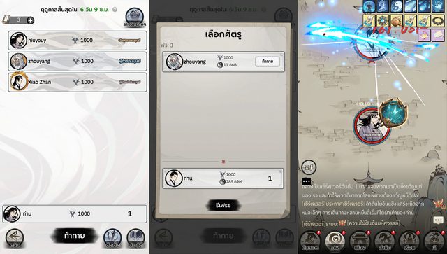 - ดวลสำนัก – ศิษย์ 2 คนจากต่างสำนักสามารถเข้าท้าดวลแบบตัวต่อตัวได้เพื่อรับแต้มมาใช้งาน