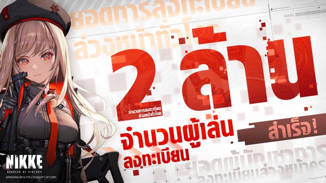 นอกจากนี้ NIKKE ได้มียอดลงทะเบียนล่วงหน้าถึง 2,000,000 ผู้เล่นทั่วโลกแล้ว พร้อมไปต่อยังเป้าหมายต่อไปเพื่อร่วมพลังผู้บัญชาการทั่วโลกเตรียมระเบิดความสนุกไปกับสาวๆนิกเกะกัน