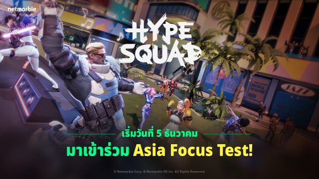 กรุงเทพฯ, ประเทศไทย (วันที่ 5 ธันวาคม พ.ศ. 2565) – เน็ตมาร์เบิ้ล ผู้พัฒนาและมอบประสบการณ์การเล่นเกมคุณภาพสูงชั้นนำ ได้เริ่มเปิดการทดสอบ Asia Focus Test สำหรับเกมแบทเทิลรอยัลแอ็คชันสุดมันส์อย่าง HypeSquad สำหรับการทดสอบ Asia Focus Test จะจัดขึ้นตั้งแต่วันที่ 5-13 ธันวาคม นี้ ให้ผู้เล่นได้สัมผัสโหมดและคอนเทนต์ใหม่ก่อนเกมเปิดให้บริการอย่างเป็นทางการผ่าน Steam ก่อนใคร ! ผู้เล่นสามารถเข้าร่วมทดสอบโดยดาวน์โหลดโปรแกรม ‘HypeSquad Asia Focus Test’ ผ่าน เว็บไซต์ Steam ทางการ ได้แล้ววันนี้ !