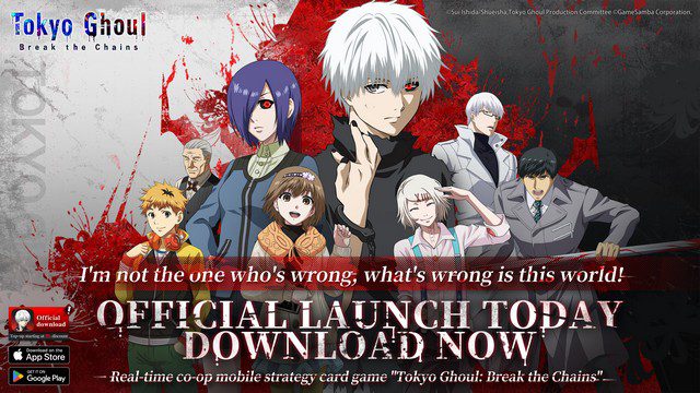 อีกหนึ่งเกมส์ที่พร้อมจะพาเราดำดิ่งสู่โลกของอนิเมะไปกับ Tokyo Ghoul : Break the Chains เกมส์มือถือใหม่จากอนิเมะดัง Tokyo Ghoul ให้เราได้สะสมตัวละครจากต้นฉบับ มาสร้างเป็นทีมในฝันเพื่อเดินเนื้อเรื่อง พร้อมเปิดให้บริการแล้ววันนี้ทั้งระบบ iOS และ Android