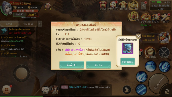 ระบบ AI ออฟไลน์ เป็นอีกระบบในเกมที่ค่อนข้างพิเศษ แม้ผู้เล่นจะทำการออฟไลน์ไปแล้ว แต่ตัวละครก็จะทำการอัปเวลตีมอนต่อไปได้เองโดยอัตโนมัติ สำหรับฟังก์ชั่นนี้ จะปลดล็อคในเลเวล 60 ขึ้นไป ผุ้เล่นสามารถหาบัตร AI ออฟไลน์ ได้จากดันเจี้ยนและการทำภารกิจต่างๆ โดยในแต่ละวันสามารถใช้บัตร AI ออฟไลน์และรันอัตโนมัติสูงสุดได้ถึง 20 ชั่วโมงเลยทีเดียว