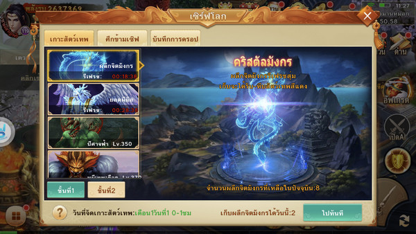 – ระบบสัตว์เทพ เมื่อเลเวลตัวละครถึง 350 และสะสมอุปกรณ์สัตว์เทพได้ครบก็จะสามารถปลุกสัตว์เทพขึ้นมาได้ เมื่อนำสัตว์เทพติดตามไปด้วยก็จะทำให้คุณสมบัติของตัวละครเพิ่มสูงขึ้น แค่นี้ก็ไม่ต้องกลัวใครแล้ว