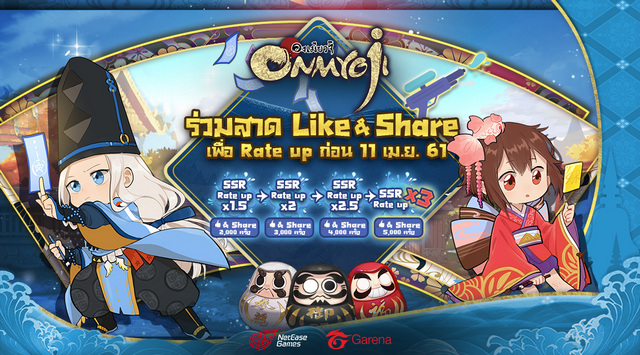 ติดตามข่าวสารและรายละเอียดเพิ่มเติมได้ที่ Facebook : Garena Onmyoji Thailand♣
