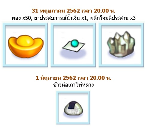 สำหรับเพื่อนๆ ที่เล่นเซิร์ฟเวอร์เดิมก็ไม่ต้องน้อยใจไป เหยาใจป้ำอยู่แล้ว จัดเต็มกันไปเลยแจกไอเทมชุดใหญ่ฉลองวันหยุดยาว เพียงเข้าเกมในช่วงเวลากิจกรรมทุกวันเวลา 20.00 น. ตั้งแต่วันที่ 31 พฤษภาคม – 2 มิถุนายน 2562 เหยาจะจัดส่งไอเทมเข้าจดหมายให้เลยฟรีๆ หยุดยาวนี้อย่าพลาดลืมเข้าเกมมารับจดหมายน้า (จดหมายจะหายไปเวลา 23.59 น.)