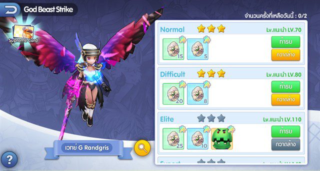 - โหมด God Beast Strike ในส่วน ท้ารบ