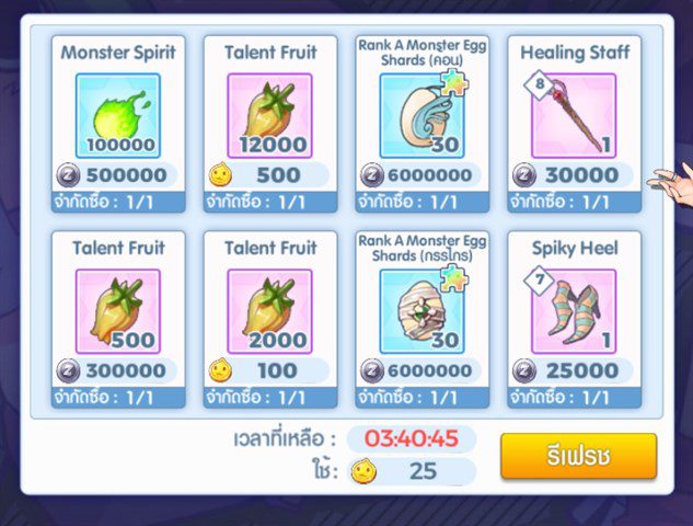 5.) กิลด์ (ได้จากการเข้าสู่ระบบ) – ได้ Monster Spirit และผลไม้