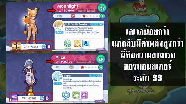 Moonlight (ระดับ SS) เลเวล 120 จะมีค่าพลัง 73,540