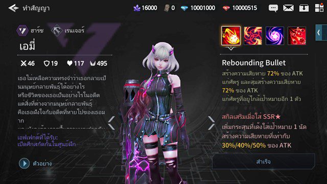 ความน่าใช้ – สำหรับคนไหนที่เบื่อพวกตัวแนวหลังที่ชอบยิงดอตทีมเราเรื่อยๆ แนะนำใส่ตัวนี้ลงทีม เพราะสามารถหรอยยิงศัตรูแนวหลังสุดได้ ทำให้ติดสตั๊นได้ และมีสกิลซาร์จโจมตีรอ 1 เทิร์น ซึ่งจะโจมตีปิดฉากได้เพราะมีพลังแรงมาก เป็นอีกตัวที่แนะนำควรมีลงทีม