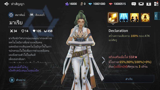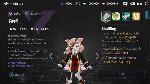 ความน่าใช้ – บอกได้เลยว่าเป็นตัวละครแนะนำที่ต้องมี เพราะสกิลฮีลนั้นนอกจากจะฮีลได้แรงและฮีลหมูํได้แล้ว ความสามารถเด่นก็คือลบบัฟที่ทีมเราโดนจากอีกฝ่ายได้ด้วย นี่คือตัวละครที่แนะนำว่าควรมีติดทีม ส่วนการโจมตีก็ ตัว-ตัว ปกติ
