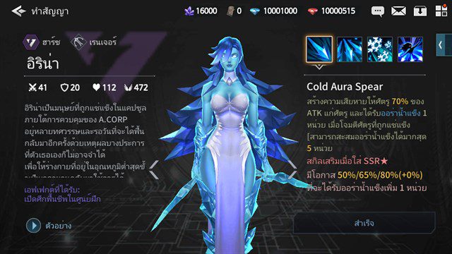 จุดเด่น – โจมตีทะลวงเดี่ยว จับแช่แข็งได้