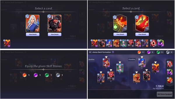 ใน ‘อารีน่า’ แบบเดิม ผู้เล่นจะสามารถเลือกมอนสเตอร์จัดเข้าเด็คต่อสู้ได้ตามใจชอบ แต่อารีน่าโฉมใหม่นี้ ผู้เล่นจะต้องเลือกการ์ดมอนสเตอร์ 1 ใบจากการ์ด 2 ใบที่กำหนดให้เพื่อนำไปจัดเด็คต่อสู้ หลังจากขั้นตอนเลือกการ์ดมอนสเตอร์แล้ว ผู้เล่นจะได้เลือกการ์ดหินสกิลเกรดธรรมดา~ตำนาน อีกอย่างละ 1 ใบให้กับมอนสเตอร์ การเพิ่มกิมมิคที่สร้างความเซอร์ไพรส์เข้ามานี้จะช่วยเพิ่มความสนุกและความท้าทายให้การจัดเด็คได้มากยิ่งขึ้น
