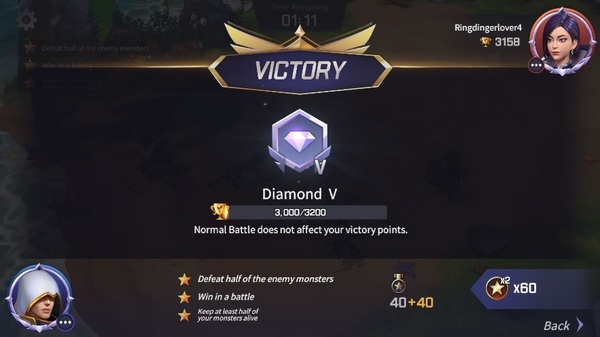 *หากชนะครบ 10 ครั้ง หรือแพ้ครบ 3 ครั้งแล้ว เมื่อเข้าสู่อารีน่าอีกครั้งคุณจะได้เลือกจัดเด็คใหม่ ส่วนมอนสเตอร์ทุกตัวจะถูกปรับเป็นเลเวล 10 และไม่มีการใช้งานรูน