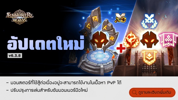 Com2uS ปล่อยอัปเดตฟีเจอร์ใหม่ในเกม Summoners War เวอร์ชั่น v6.3.8 เรียบร้อยแล้ว โดยการอัปเดตครั้งนี้ได้ปรับปรุงระบบต่างๆมากมายอำนวยความสะดวกในการเล่นมากขึ้นกว่าเดิม โดยเฉพาะระบบการนำตัวที่สู้ต่อเนื่องอยู่ให้สามารถไปสู้ในโหมดอื่นๆได้พร้อมกันด้วย! ถือว่าเป็นจุดเปลี่ยนที่อำนวยความสะดวกให้ผู้เล่นสุดๆ เพราะในช่วงที่ตัวยังมีไม่เยอะนั้น เราสามารถฟาร์มไปด้วยและ เก็บเควส PVP ประจำวันได้ด้วย นอกจากนี้ยังมีการปรับปรุงระบบการเล่นสำหรับมือใหม่เพิ่มเติมอีกด้วย จะมีอะไรบ้างนั้นมาดูกันเลยค่ะ >,<