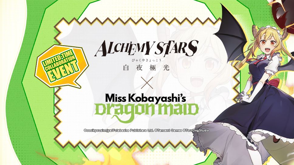 หลังจากเกม Alchemy Stars เกมมือถือแนว Puzzle RPG ชื่อดังที่การันตีรางวัล The Best Game Changing จาก Google Play Best of 2021 ที่เพิ่งฉลองครบรอบครึ่งปีเมื่อช่วงสิ่นปีที่ผ่านมา ต้นปี 2022 นี้ก็ได้ประเดิมความยิ่งใหญ่ด้วยการเพิ่มเนื้อหาความร่วมมือครั้งแรกกับ IP อนิเมะสุดน่ารักจากญี่ปุ่น “Miss Kobayashi’s Dragon Maid” หรือชื่อไทยว่า “โคบายาชิซังกับเมดมังกร” ซึ่งมาพร้อมกับการอัปเดตอีเวนต์ใหม่ล่าสุด “วันหยุดของเมดมังกร” โดยได้ปล่อยอัปเดตในวันที่ 13 มกราคม 2565 ตั้งแต่เวลา 16.00 น. เป็นต้นไป ซึ่งเนื้อหาหลักของการอัปเดตครั้งนี้จัดเต็มความร่วมมือครั้งแรกอันน่าตื่นเต้นเอาใจแฟนๆอนิเมะให้ได้รับประสบการณ์การเล่นเกมแก่ผู้นำทางทุกคนได้สนุกมากยิ่งขึ้น โดยยกขบวนออโรเรียนเอ็กซ์คลูซีฟคอลแลปจากตัวละครในเรื่องนี้มาถึง 5 ตัวด้วยกัน จัดเต็มแบบนี้ต้องไม่พลาดที่จะอัญเชิญเหล่าเมดมังกร!