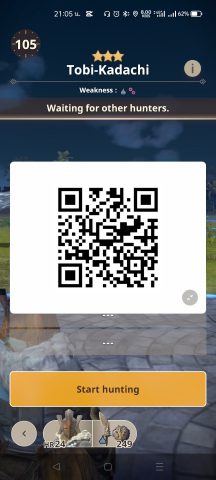 - สามารถสร้าง QR code ในการสร้างปาร์ตี้ได้ โดยเราต้องปาเพนท์บอลใส่มอนสเตอร์ก่อน จากนั้นกดล่ามอนสเตอร์จากช่อง Pintball เลือก Hunt together using OR code ซึ่งจะแสดง QR code ให้นักล่าคนอื่นๆแสกนร่วมปาร์ตี้กันได้