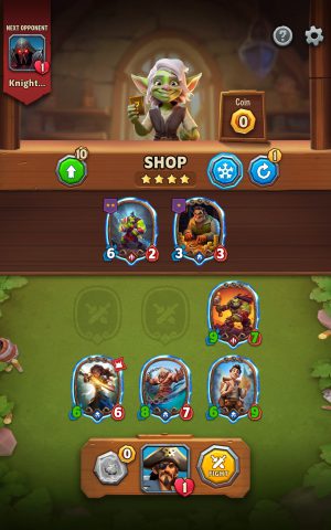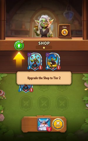 หลังจากเลือกฮีโร่ก็เข้าสู่การจ้างมินเนี่ยม เราจะได้รับเหรียญทองซึ่งเปรียบเสมือนมานา โดยจะเพิ่ม 1 เหรียญทุกๆรอบ ซึ่งเราสามารถใช้ซื้อมินเนี่ยนหรืออัพเกรดโรงเตี้ยมได้ ทุกๆครั้งที่เข้าโรงเตี้ยม จะมีมินเนี่ยนให้เราได้เลือกซื้อ จำนวนมินเนี่ยนที่ให้เลือกจะยิ่งมีดาวสูงๆจะยิ่งแข็งแกร่งขึ้นหากอัพเกรดโรงเตี้ยม โดยมินเนี่ยนทุกตัวราคา 3 เหรียญทอง แต่เมื่อขายมินเนี่ยน จะได้คืน 1 เหรียญทองเท่านั้น (มินเนี่ยนที่ขายได้เฉพาะตัวที่อยู่บนสนามเท่านั้น ตัวที่อยู่บนมือต้องนำลงสนามก่อนจึงขายได้) สามารถสุ่มมินเนี่ยนใหม่ได้ โดยกดปุ่มรีเฟรช ใช้ค่าใช้จ่าย 1 เหรียญ แต่หากสุ่มแล้วเจอมินเนี่ยนที่ถูกใจแล้วไม่มีเงินซื้อ สามารถกดปุ่มแช่แข็งเพื่อแช่มินเนี่ยนทั้งหมดในโรงเตี้ยม ไว้ซื้อในรอบหน้าได้