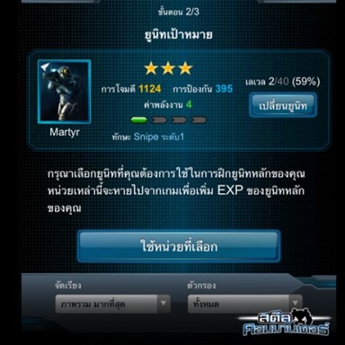 เลือกการ์ดยูนิทหลัก และ ยูนิทเป้าหมาย เพื่อการฝึกฝน