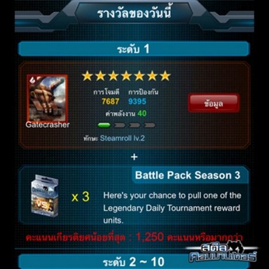 ซึ่งผู้เล่นสามารถเติมได้ด้วยการใช้สินแร่ที่มีอยู่ และเมื่อไต่อันดับเป็นผู้เล่นสูงสุดประจำวัน ก็จะได้รับการ์ดระดับสูงเป็นของรางวัล ซึ่งอันดับในแต่ละวัน จะได้รับรางวัลมากน้อยแตกต่างกันไป