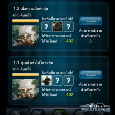 ปฏิบัติภารกิจ ด้วยการปราบเอเลี่ยน จะได้รับค่าประสบการณ์ ทองคำ และการ์ด เพิ่มเติม