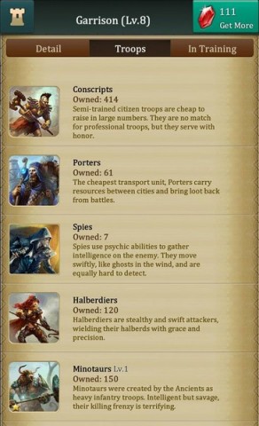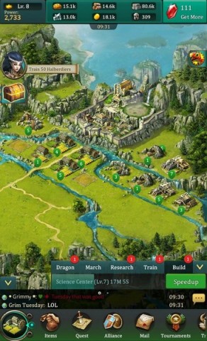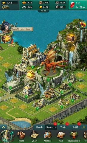 นอกจากนี้ยังต้องบริหารทรัพยากรในการก่อสร้างสิ่งปลูกสร้างต่างๆ เพื่อสร้างค่าป้องกัน และสร้างพลทหารหลากหลายประเภท (รวมถึงกองพลมังกรด้วยนะ) ฝึกฝนการต่อสู้ และอัพเกรดอาวุธต่างๆ โดยช่วงเริ่มต้นนั้นเราควรอัพสิ่งก่อสร้างตามเควสที่ได้ เพื่อรับรางวัลเป็นทรัพยากรเพิ่มเติม และในช่วง 7 วันตั้งแต่เริ่มเล่นจะเป็นโหมดผู้เริ่มต้น ซึ่งจะไม่มีใครมาตีเมืองเราได้ ฉะนั้น 7 วันนี้รีบๆ สร้างให้เยอะที่สุดเท่าที่ทำได้เลย