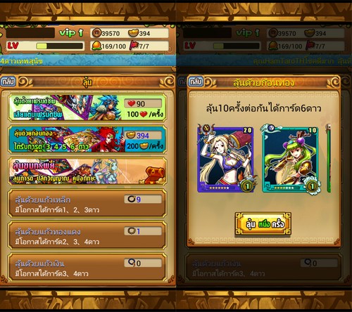 12. การลุ้นการ์ดใหม่ๆ เกมนี้สามารถลุ้นการ์ดได้หลายวิธีทั้ง ใช้แต้มเฟรนด์ชิฟ ใช้ทอง ใช้ไอเทมที่ได้รับในเกมหรือลุ้นฟรีวันละครั้ง โดยการ์ดที่ได้ก็จะแตกต่างกันไปตามที่กำหนด