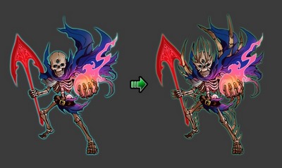 Upgrade + Evolve : พัฒนาการ์ดตัวละครให้แข็งแกร่ง หรือเปลี่ยนร่างสู่อีกระดับขั้น พร้อมสกิลและค่าพลังที่สูงขึ้นตามระดับตัวละคร