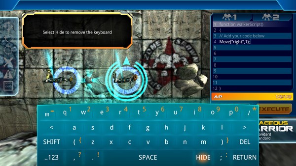 โหมดฝึกฝน ซึ่งจะมี Challenge หลายๆรูปแบบให้เราเล่นและฝึกฝนการควบคุม (มีทั้งแบบออกคำสั่งและใส่คำสั่งเอง)และเราจะได้รางวัลเป็นเงินในการซื้ออาวุธหรืออุปกรณ์