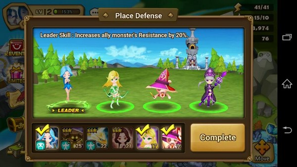 เราจะต้องเซ็ตทีมเพื่อป้องกันเกาะลอยฟ้าของเรา เวลาที่คนอื่นเข้ามาตี พยายามหามอนสเตอร์ที่มี Leader Skill อยู่ในตำแหน่ง Leader และเวลาใครที่เลือกโจมตีเราก็จะเจอกับมอนสเตอร์เซ็ตนี้ (สามารถเปลี่ยนได้ตลอดเวลา) โดยมอนสเตอร์ Leader ก็จะเป็นมอนสเตอร์หลักของเรา ในการช่วยเหลือเพื่อนได้เหมือนกัน