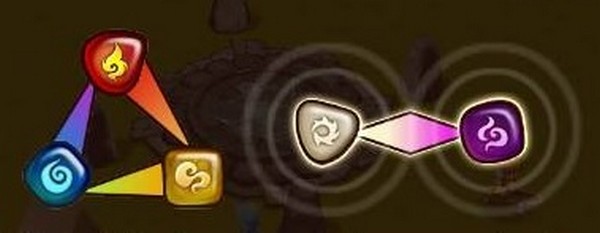 โดย ธาตุไฟ ชนะ ธาตุลม , ธาตุลม ชนะ ธาตุน้ำ และ ธาตุน้ำ ชนะ ธาตุไฟ ส่วนธาตุแสงสว่าง และธาตุความมืดจะแพ้ทางกันเอง