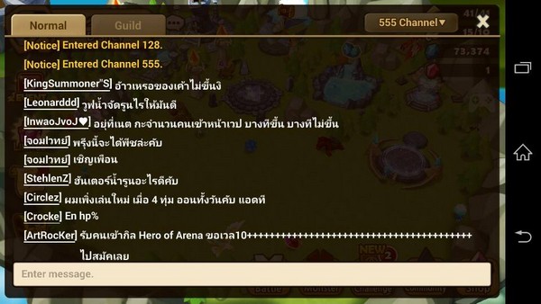 วิธีเลือกแชนแนล คือการคลิกที่ไอคอนรูปคำพูด ด้านบน จะมีเลขแชนแนลให้พิมพ์ เราก็พิมพ์ 555 ไป เท่านี้เราก็จะได้พูดคุยแลกเปลี่ยนความคิดเห็นกับกลุ่มผู้เล่นคนไทยด้วยกันเองได้แล้วค่ะ