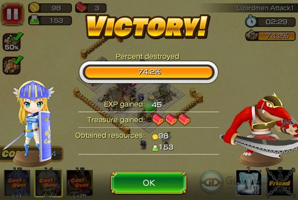 จากนั้นเมื่อเข้าสู่เมืองของเรา จะมีข้อมูลและเมนูต่างๆ ปรากฏขึ้น ภายในเมือง เราสามารถเก็บเงินและวัตถุดิบ รวมถึงสร้างคลังเสบียง ป้อมปราการ กับดัก ได้ที่นี่ และที่สำคัญนี่คือฐานทัพของเราด้วย ฉะนั้น การสร้างหรือวางป้อมปราการต่างๆ เราจะต้องวางแผน ไม่ให้คนอื่นเข้าโจมตีได้ง่ายอีกด้วยนะ