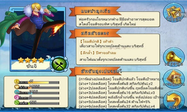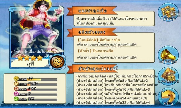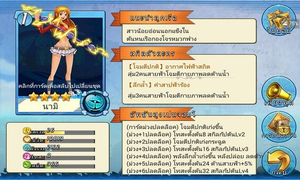 เราสามารถกดที่ตัวละครเพื่อดูสกิล และความสามารถต่างๆ รวมถึงข้อมูลที่จะอัพเกรดตัวละครนั้นได้ด้วย (มีเสียงพากย์ของตัวนั้นๆ ด้วยล่ะ เจ๋งไปเลย)