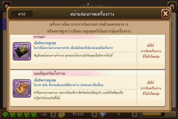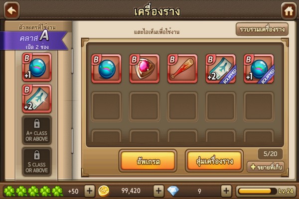 และในเครื่องรางนี้ ตัวละครเราจะสามารถใส่ได้สูงสุดที่ 4 ช่อง โดยอยู่ที่การด์ที่เราใช้งานครับ ถ้าเป็นการด์ระดับ S (ซึ่งตอนนี้ยังไม่มีการด์ระดับนี้) จะใส่ได้ 4 ชิ้น และ A+ 3 ชิ้นไล่ลำดับลงมา A 2 ช่อง และ B 1 ช่อง และการเปิดเครื่องรางนั้นมีโอกาสที่จะได้ของซ้ำ เราก็สามารถขายทิ้งได้หรือเอามาอัพเกรดเพราะเครื่องรางจะอัพเกรดนั้นต้องเอาเครื่องรางชิ้นอื่นมาอัพเกรดด้วย 1 ชิ้นและชิ้นนั้นจะหายไป